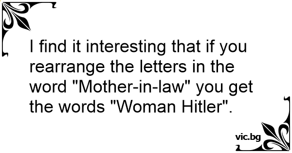 I find it interesting that if you rearrange the letters in the word "Mother-in-law" you get the words "Woman Нiтlеr".