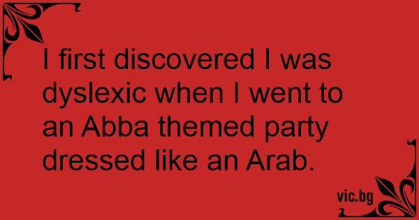 I first discovered I was dyslexic when I went to an Abba themed party dressed like an Arab.