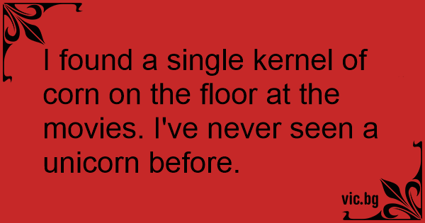 I found a single kernel of corn on the floor at the movies. I've never seen a unicorn before.