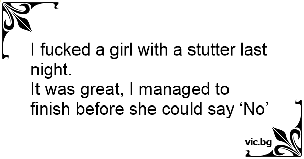 I fuскеd a girl with a stutter last night.<br />It was great, I managed to finish before she could say ‘No’