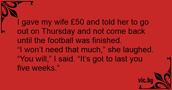 I gave my wife £50 and told her to go out on Thursday and not come back until the football was finished.