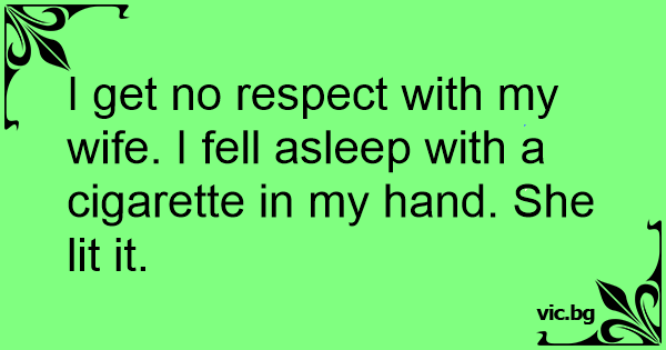 I get no respect with my wife. I fell asleep with a cigarette in my hand. She lit it.