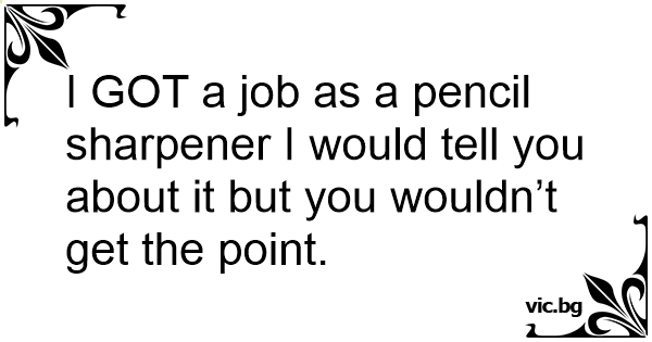 I GOT a job as a pencil sharpener I would tell you about it but you wouldn’t get the point.