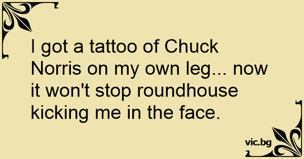 I got a tattoo of Chuck Norris on my own leg... now it won't stop roundhouse kicking me in the face.
