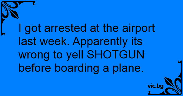 I got arrested at the airport last week. Apparently its wrong to yell SHOTGUN before boarding a plane.
