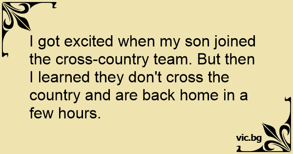 I got excited when my son joined the cross-country team. But then I learned they don't cross the country and are back home in a few hours.