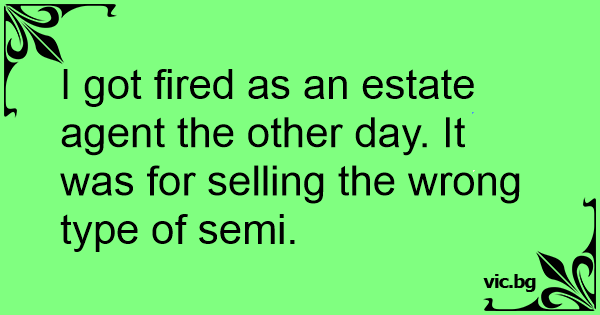 I got fired as an estate agent the other day. It was for selling the wrong type of semi.