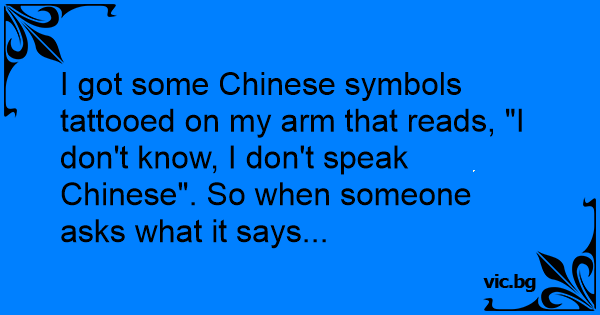 I got some Chinese symbols tattooed on my arm that reads, "I don't know, I don't speak Chinese". So when someone asks what it says...