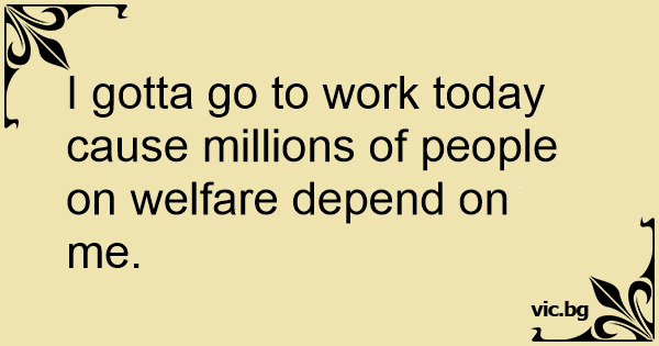 I gotta go to work today cause millions of people on welfare depend on me.