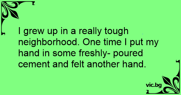 I grew up in a really tough neighborhood. One time I put my hand in some freshly- poured cement and felt another hand.