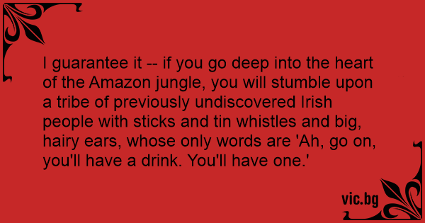I guarantee it -- if you go deep into the heart of the Amazon jungle, you will stumble upon a tribe of previously undiscovered Irish people with sticks and tin whistles and big, hairy ears, whose only words are 'Ah, go on, you'll have a drink. You'll have one.'