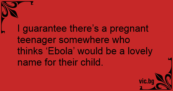 I guarantee there’s a pregnant teenager somewhere who thinks ‘Ebola’ would be a lovely name for their child.