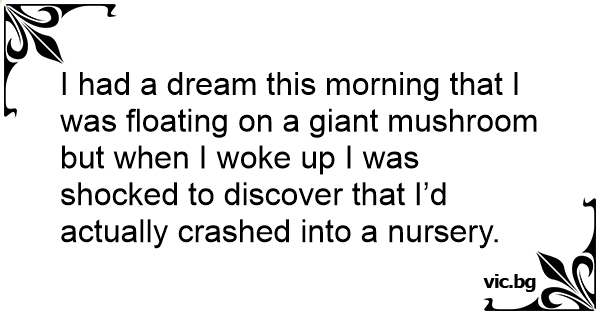 I had a dream this morning that I was floating on a giant mushroom but when I woke up I was shocked to discover that I’d actually crashed into a nursery.