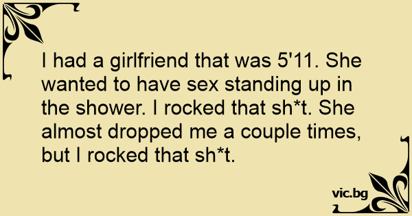 I had a girlfriend that was 5'11. She wanted to have sеx standing up in the shower. I rocked that sh*t. She almost dropped me a couple times, but I rocked that sh*t.