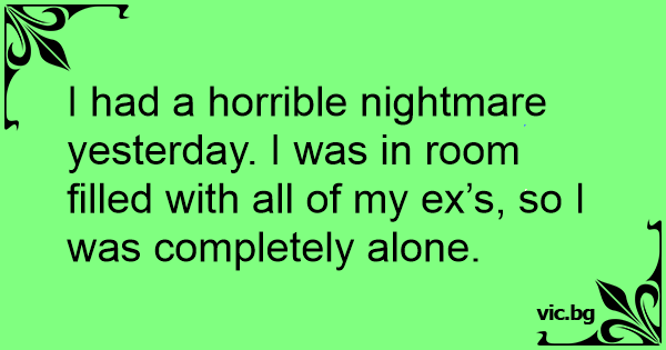 I had a horrible nightmare yesterday. I was in room filled with all of my ex’s, so I was completely alone.