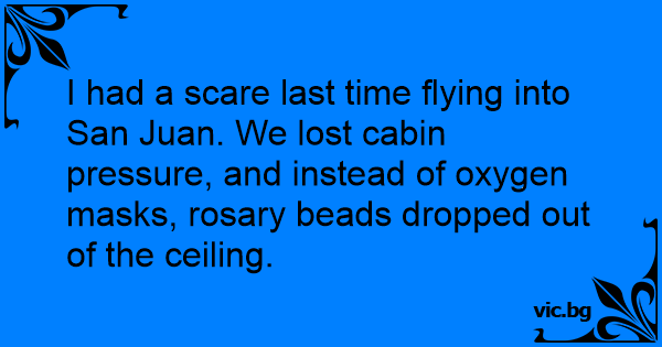 I had a scare last time flying into San Juan. We lost cabin pressure, and instead of oxygen masks, rosary beads dropped out of the ceiling.