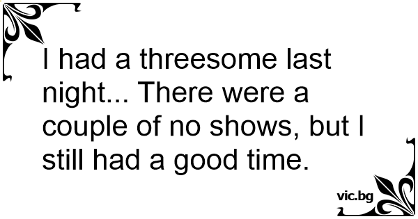 I had a тhrееsоме last night... There were a couple of no shows, but I still had a good time.