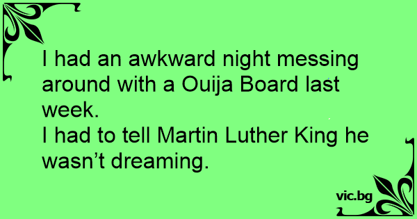 I had an awkward night messing around with a Ouija Board last week. I had to tell Martin Luther King he wasn’t dreaming.