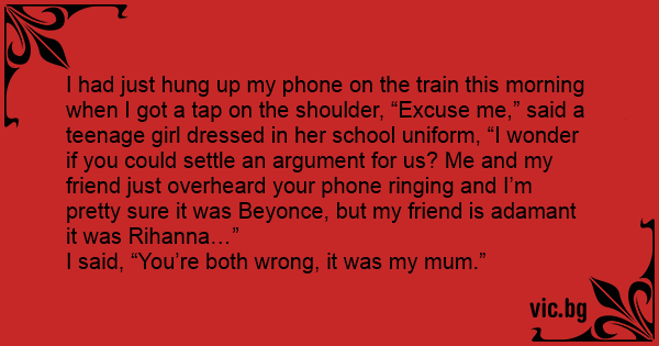 I had just hung up my phone on the train this morning when I got a tap on the shoulder, “Excuse me,” said a teenage girl dressed in her school uniform, “I wonder if you could settle an argument for us? Me and my friend just overheard your phone ringing and I’m pretty sure it was Beyonce, but my friend is adamant it was Rihanna…”