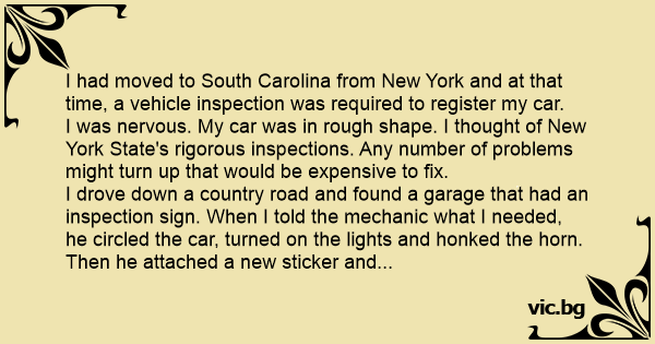 I had moved to South Carolina from New York and at that time, a vehicle inspection was required to register my car.