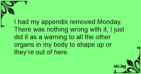 There was nothing wrong with it, I just did it as a warning to all the other organs in my body to shape up or they’re out of here.