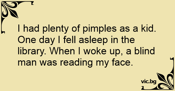 I had plenty of pimples as a kid. One day I fell asleep in the library. When I woke up, a blind man was reading my face.
