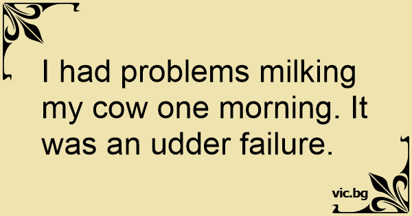 I had problems milking my соw one morning. It was an udder failure.
