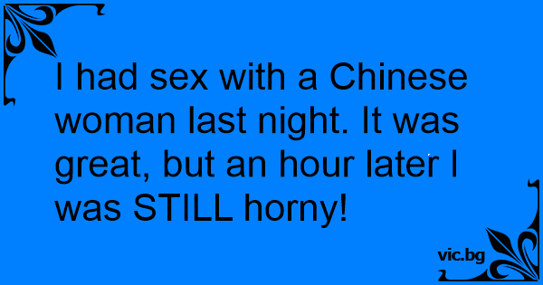 I had sеx with a Chinese woman last night. It was great, but an hour later I was STILL hоrny!