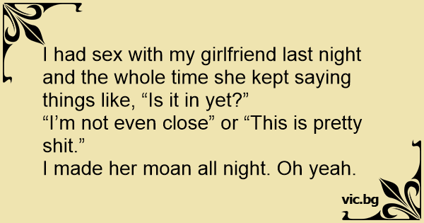 I had sеx with my girlfriend last night and the whole time she kept saying things like, “Is it in yet?”