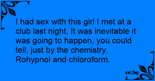 I had sеx with this girl I met at a club last night. It was inevitable it was going to happen, you could tell, just by the chemistry.