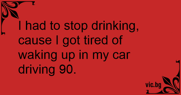I had to stop drinking, cause I got tired of waking up in my car driving 90.