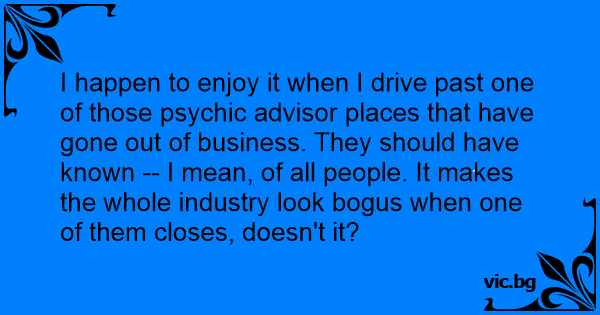 I happen to enjoy it when I drive past one of those psychic advisor places that have gone out of business. They should have known -- I mean, of all people. It makes the whole industry look bogus when one of them closes, doesn't it?