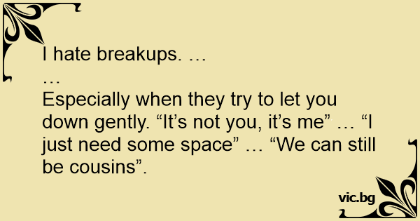 Especially when they try to let you down gently. “It’s not you, it’s me” … “I just need some space” … “We can still be cousins”.