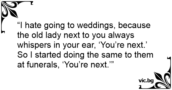 “I hate going to weddings, because the old lady next to you always whispers in your ear, ‘You’re next.’ So I started doing the same to them at funerals, ‘You’re next.’”