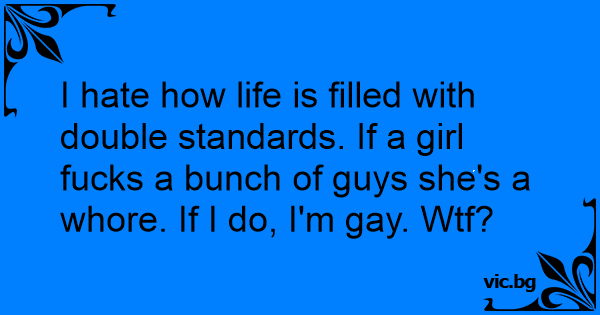 I hate how life is filled with double standards. If a girl fuскs a bunch of guys she's a whоrе. If I do, I'm gаy. Wтf?