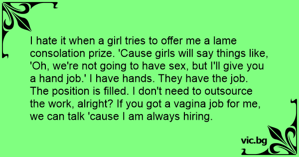 I hate it when a girl tries to offer me a lame consolation prize. 'Cause girls will say things like, 'Oh, we're not going to have sеx, but I'll give you a hand job.' I have hands. They have the job. The position is filled. I don't need to outsource the work, alright? If you got a vаginа job for me, we can talk 'cause I am always hiring.