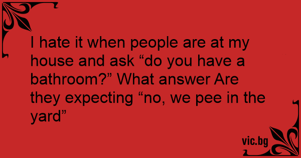 I hate it when people are at my house and ask “do you have a bathroom?” What answer Are they expecting “no, we рее in the yard”
