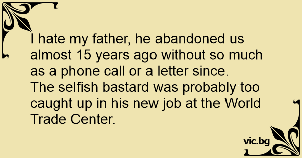 I hate my father, he abandoned us almost 15 years ago without so much as a phone call or a letter since.