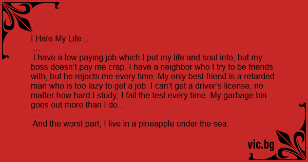 I have a low paying job which I put my life and soul into, but my boss doesn’t pay me сrар. I have a neighbor who I try to be friends with, but he rejects me every time. My only best friend is a rетаrdеd man who is too lazy to get a job. I can’t get a driver’s license, no matter how hard I study; I fail the test every time. My garbage bin goes out more than I do…