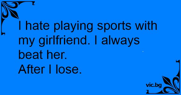I hate playing sports with my girlfriend. I always beat her.