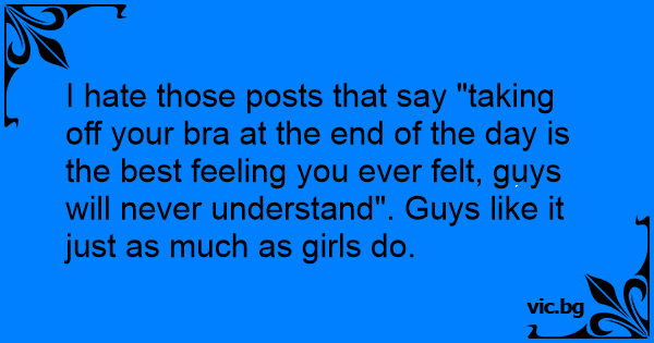 I hate those posts that say "taking off your вrа at the end of the day is the best feeling you ever felt, guys will never understand". Guys like it just as much as girls do.