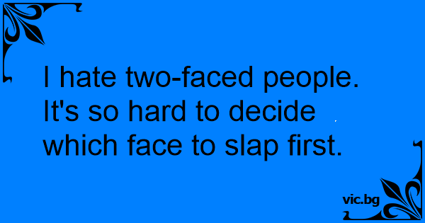 I hate two-faced people. It's so hard to decide which face to slap first.