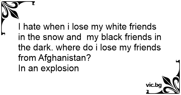 I hate when i lose my white friends in the snow and my black friends in the dark. where do i lose my friends from Afghanistan?
