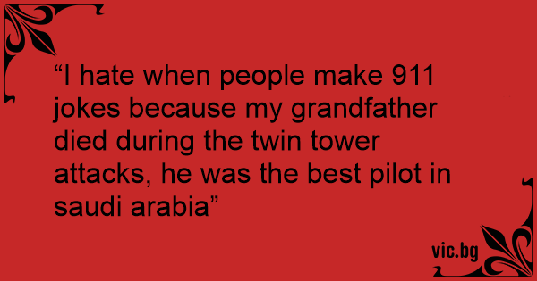 “I hate when people make 911 jokes because my grandfather died during the twin tower attacks, he was the best pilot in saudi arabia”