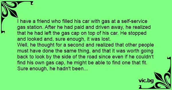 I have a friend who filled his car with gas at a self-service gas station. After he had paid and driven away, he realized that he had left the gas cap on top of his car. He stopped and looked and, sure enough, it was lost.