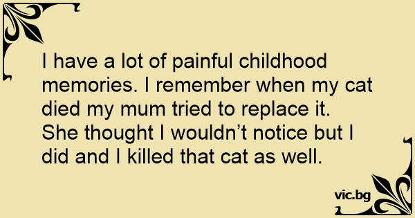 I have a lot of painful childhood memories. I remember when my cat died my mum tried to replace it. She thought I wouldn’t notice but I did and I killed that cat as well.