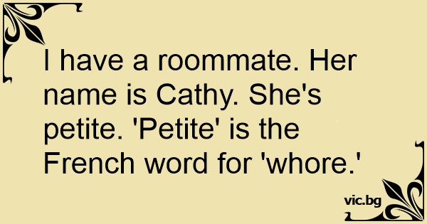 I have a roommate. Her name is Cathy. She's petite. 'Petite' is the French word for 'whоrе.'