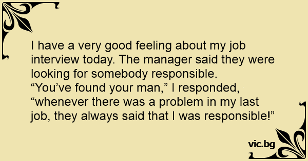 I have a very good feeling about my job interview today. The manager said they were looking for somebody responsible.