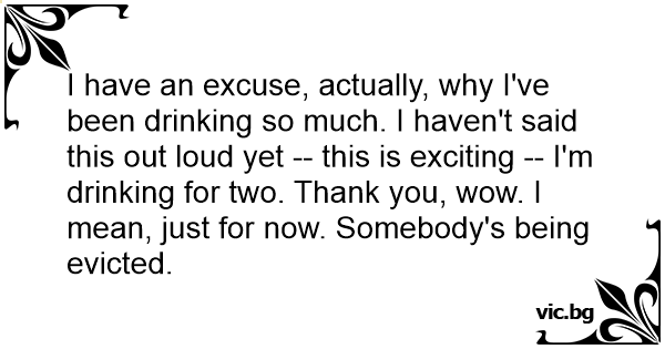 I have an excuse, actually, why I've been drinking so much. I haven't said this out loud yet -- this is exciting -- I'm drinking for two. Thank you, wow. I mean, just for now. Somebody's being evicted.