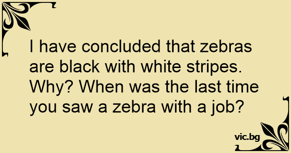 Why? When was the last time you saw a zebra with a job?